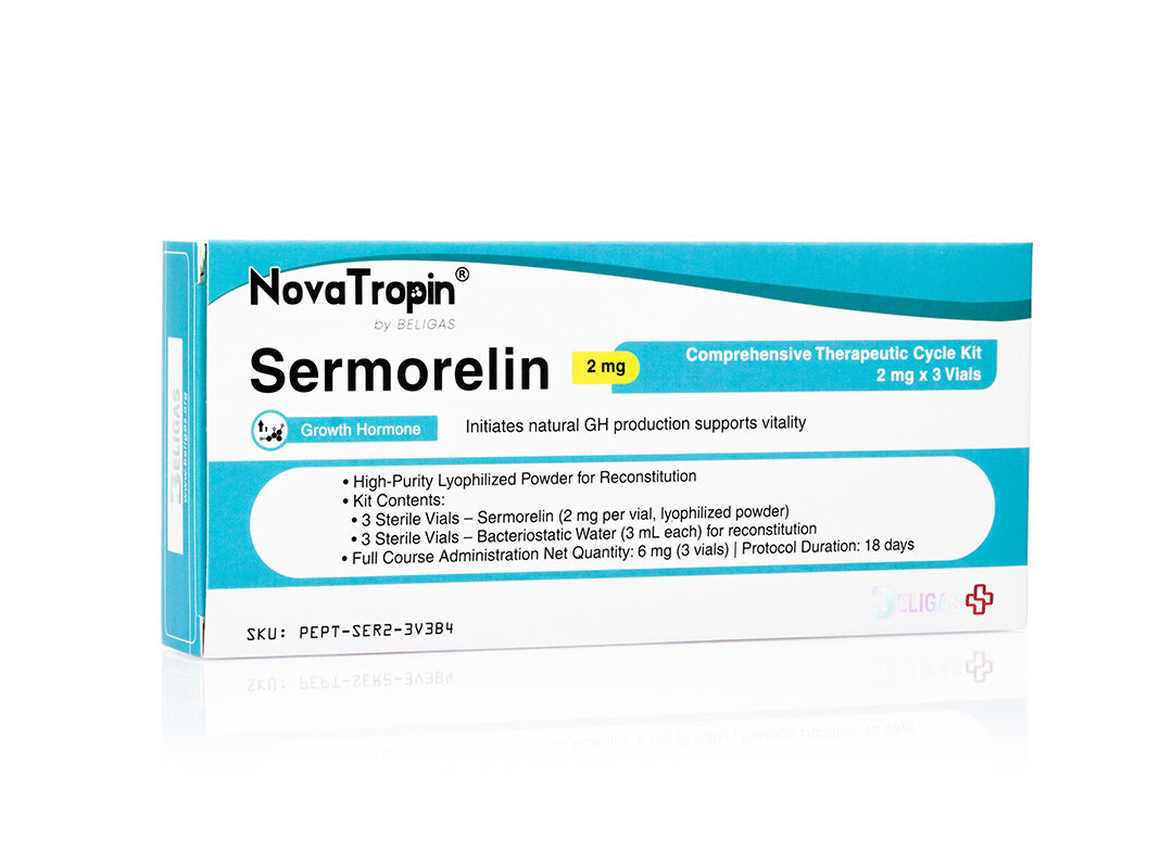 • Concentração: 6 mg de sermorelina por curso completo (3 frascos)
